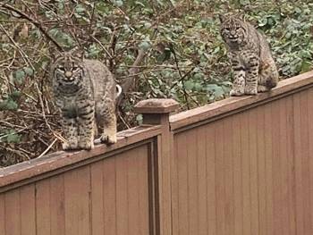 Bobcats caught on camera, and on a fence, in a Maple Ridge yard