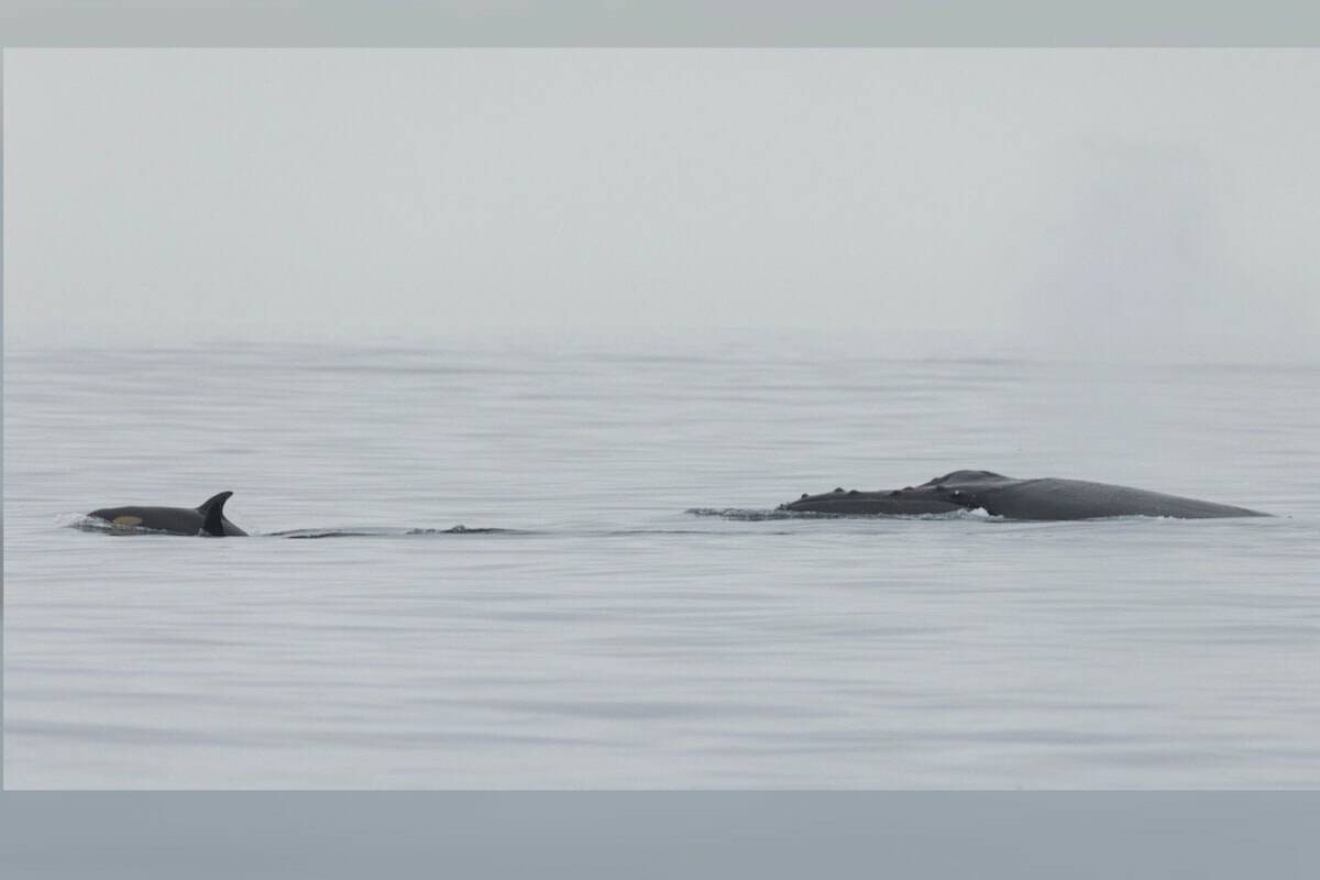 During an Oct. 4 whale-watching tour west of Sooke in the Juan de Fuca Strait, passengers got a front-row seat to a spectacular standoff between a pod of Bigg’s killer whales and a humpback named Nike – who appeared to be defending a harbour seal taking shelter in a kelp bed.